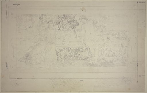 147 Galleria Borghese Rom. Zeichnung von Eugen Eduard Schaeffer nach Tizian. Mittig befindet sich ein Putto der auf dem Bauch lie- gend mit seiner rechten Hand in einem Brunnen plantscht Abb.